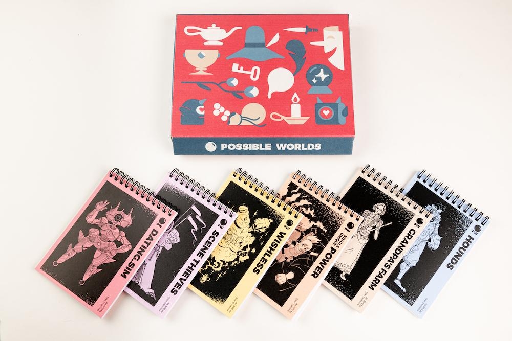 From game designer Tyler Crumrine, this box contains six innovative tabletop roleplaying games printed as pocket-sized, wire-bound guidebooks. Ranging from comedic to contemplative, each game collected here is simple enough to play with no preparation, but robust enough to play hundreds of times over without ever telling the same story twice.