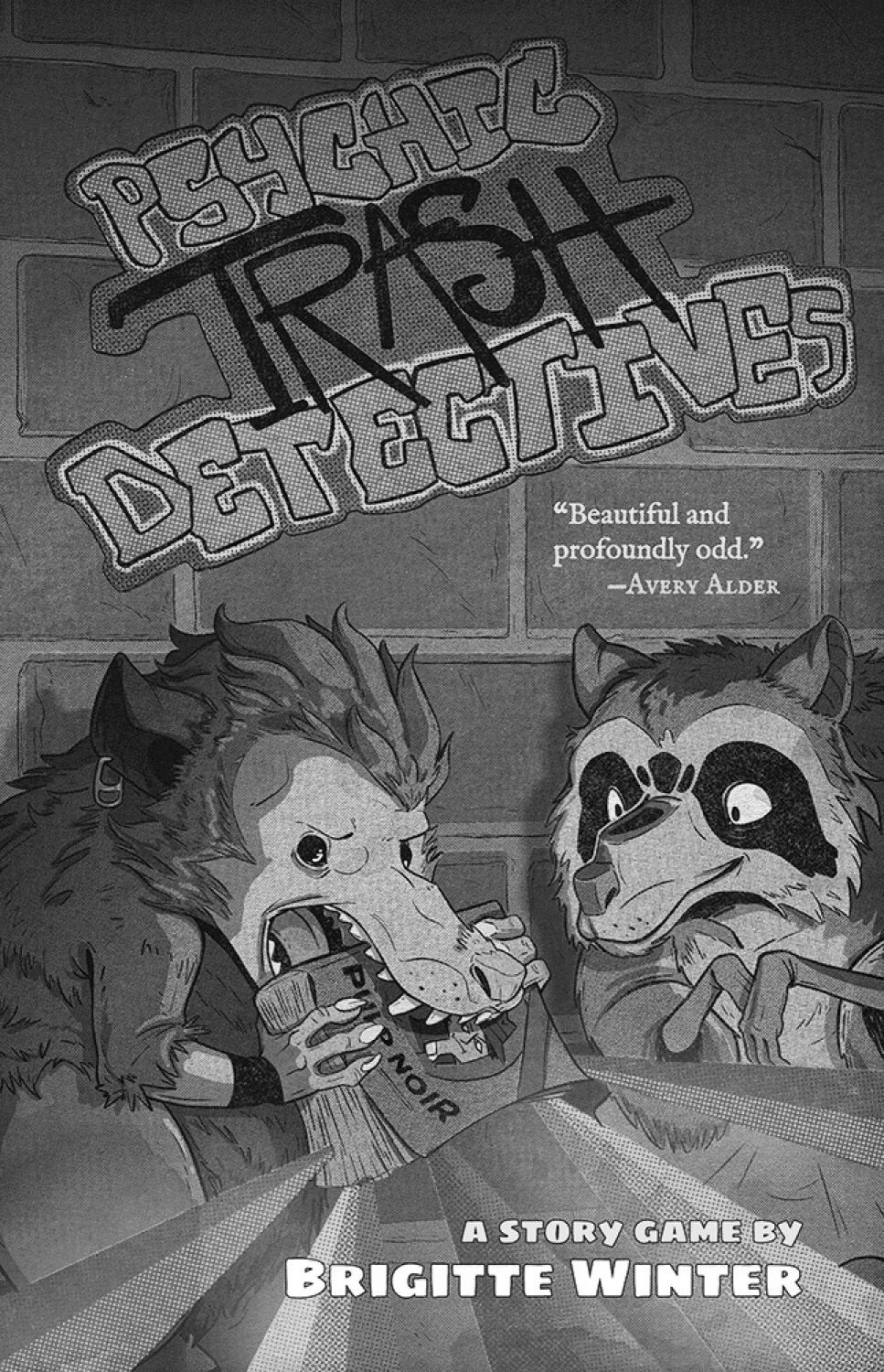 Written by game designer and published fiction writer Brigitte Winter, Psychic Trash Detectives is a full color core game book illustrated by A.V.Eerie, who creates the amazing queer webcomic Along the River Phoria