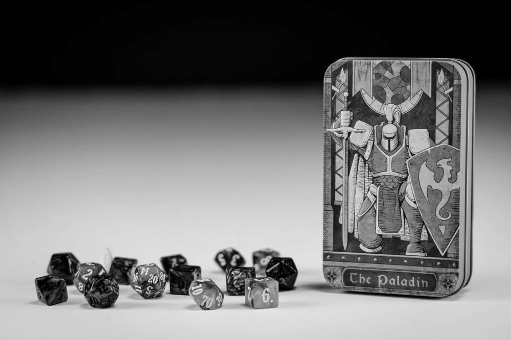 Open this tin and unleash 15 dice in two color designs, with d8s for smiting and an extra d6 and d12 for the weapon damage from your mighty blades.