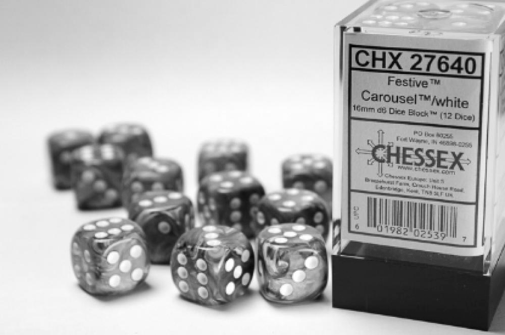 Chessex Dice Block 12-Die Set: Festive Carousel/White 16mm d6