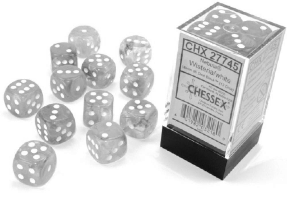 Chessex Dice Block 12-die set: Nebula Wisteria/White Luminary 16mm d6