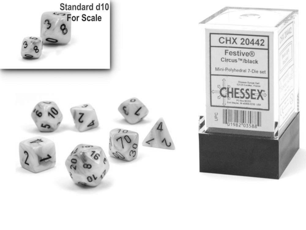 Chessex Mini-Polyhedral 7-Die Set: Festive (Black Light Reactive) - Circus/Black