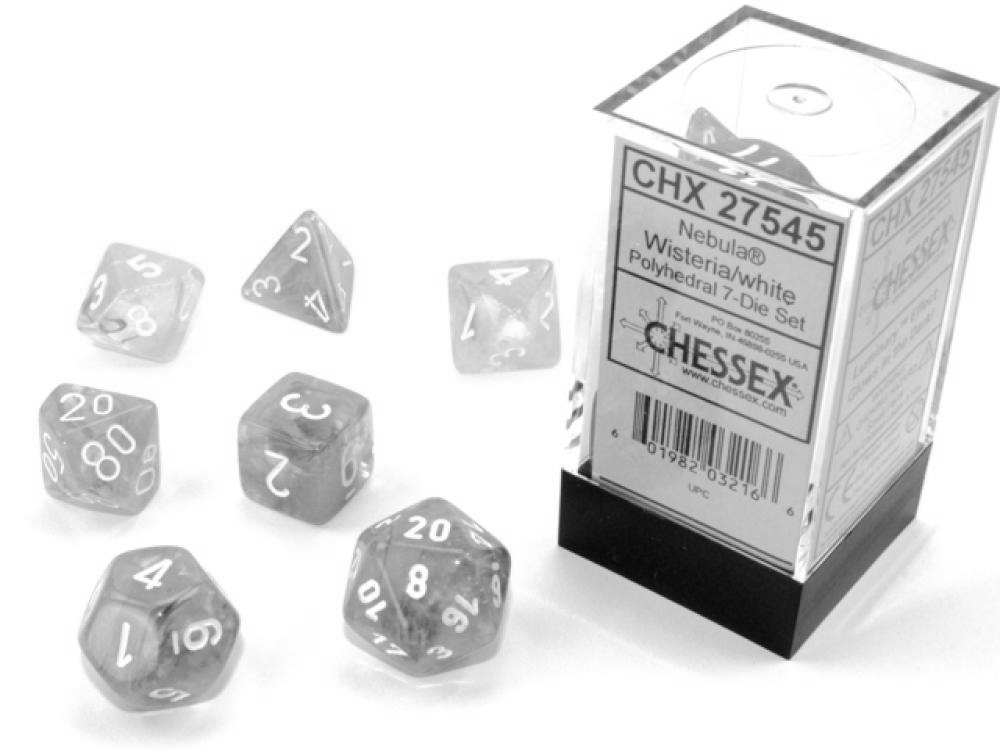 Get notified of new releases like Chessex Polyhedral 7-Die Set: Nebula (Luminary) - Wisteria/White