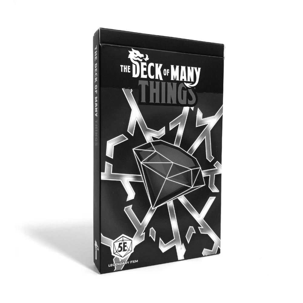 The Deck of Many Things is a wondrous item in DND. A 23 card deck with powerful effects with every draw of a card. Do you dare risk your life, soul or mind at a chance for riches and enlightenment? Each card features original artwork and easy to reference information.
