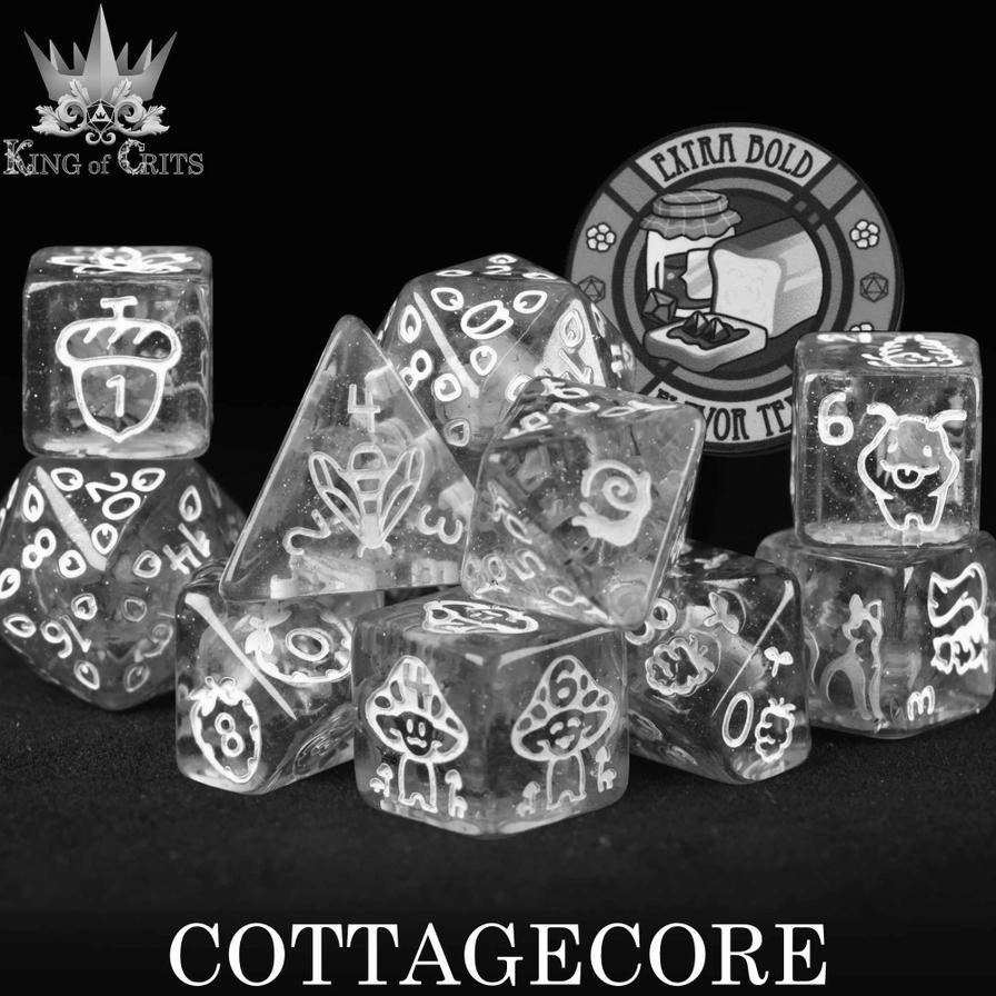Get notified of new releases like DND Dice: King of Crits Resin 11-Die Set—Cottagecore