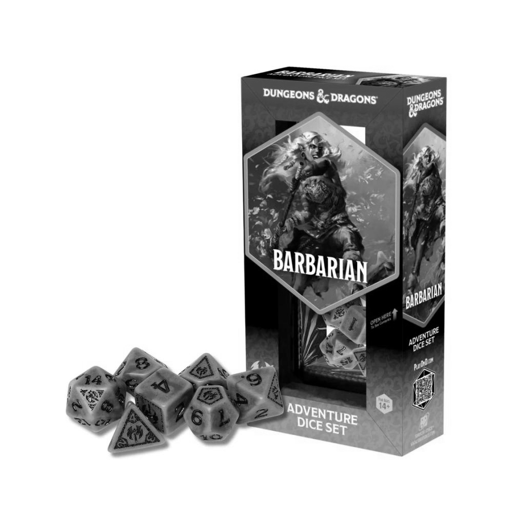 Unleash your fury with the officially licensed Dungeons & Dragons Adventure Dice Set for Barbarians. This green and brown set embodies the raw power and primal ferocity of the Barbarian, with 14 dice tailored for delivering devastating blows and withstanding the fiercest of battles. Perfect for rolling those high-damage attacks and shrugging off the toughest hits, these dice are essential for any Barbarian looking to dominate the battlefield.