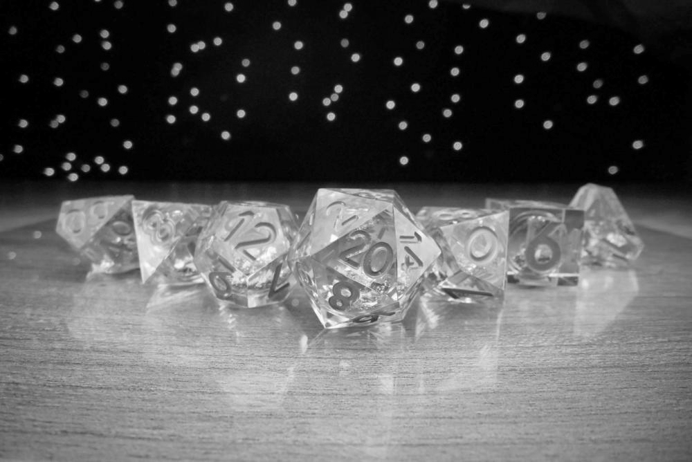 From our innovative Kickstarter, Elixir dice are infused with glittery liquid cores that swirl when rolled. Each set is handcrafted and polished to keep their beautiful sharp edges. When the liquid cores are molded into the dice, the heat from molding creates a small bubble in the liquid core. Since the bubble in the liquid is constantly moving, we have not seen an effect on rolling. These full-sized polyhedral dice sets come with 7 dice (d4, d6, d8, d10, d10%(00-90), d12, and d20).