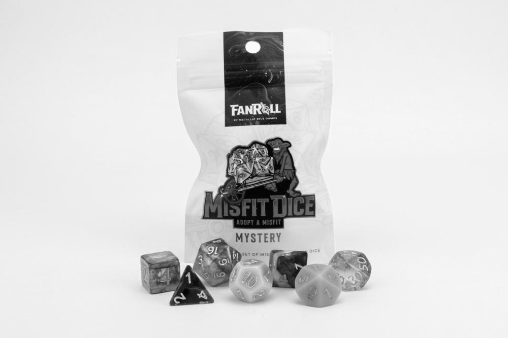 Includes a D4, D6, D8, D10, D%, D12 and D20, all different styles.