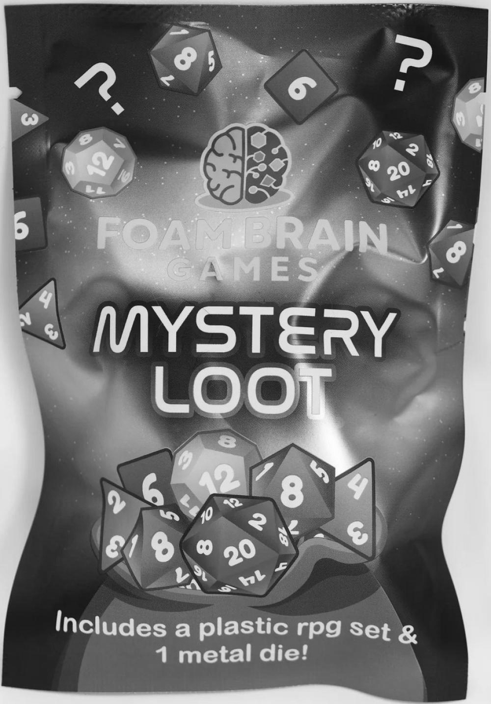 These mystery loots may or may not be responsible for creating some serious dice hoarders...Why do Foam Brain fans love this Mystery set so much?Plastic RPG Dice that's not only unique, but makes the perfect set to travel with and show off to your RPG-fanatic friends!Metal Die with a beautiful design. Just make sure you keep on eye on it (people WILL try and steal it!!)Insane Value! We don't believe in sacrificing quality. Just a super awesome & affordable option for avid dice collectors!!The question is... Which Set Will YOU Get?!Contains 1 Complete Plastic RPG Dice Set (matching set) and 1 Metal Die, in a sealed mystery package!