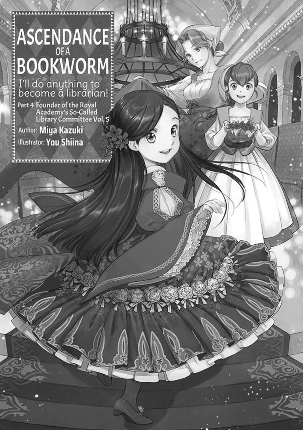 The lower city is now a true sight to behold, and Rozemyne aims to continue her development plan and secure a greater influence over the country's other duchies. Doing this will require the commoners' assistance, so she gets to work breaking down the wall that separates them and the nobles. She tours the printing workshops in the Central District, searches for new craftspeople by holding a dyeing competition, and designs her very own library in her daydreams.