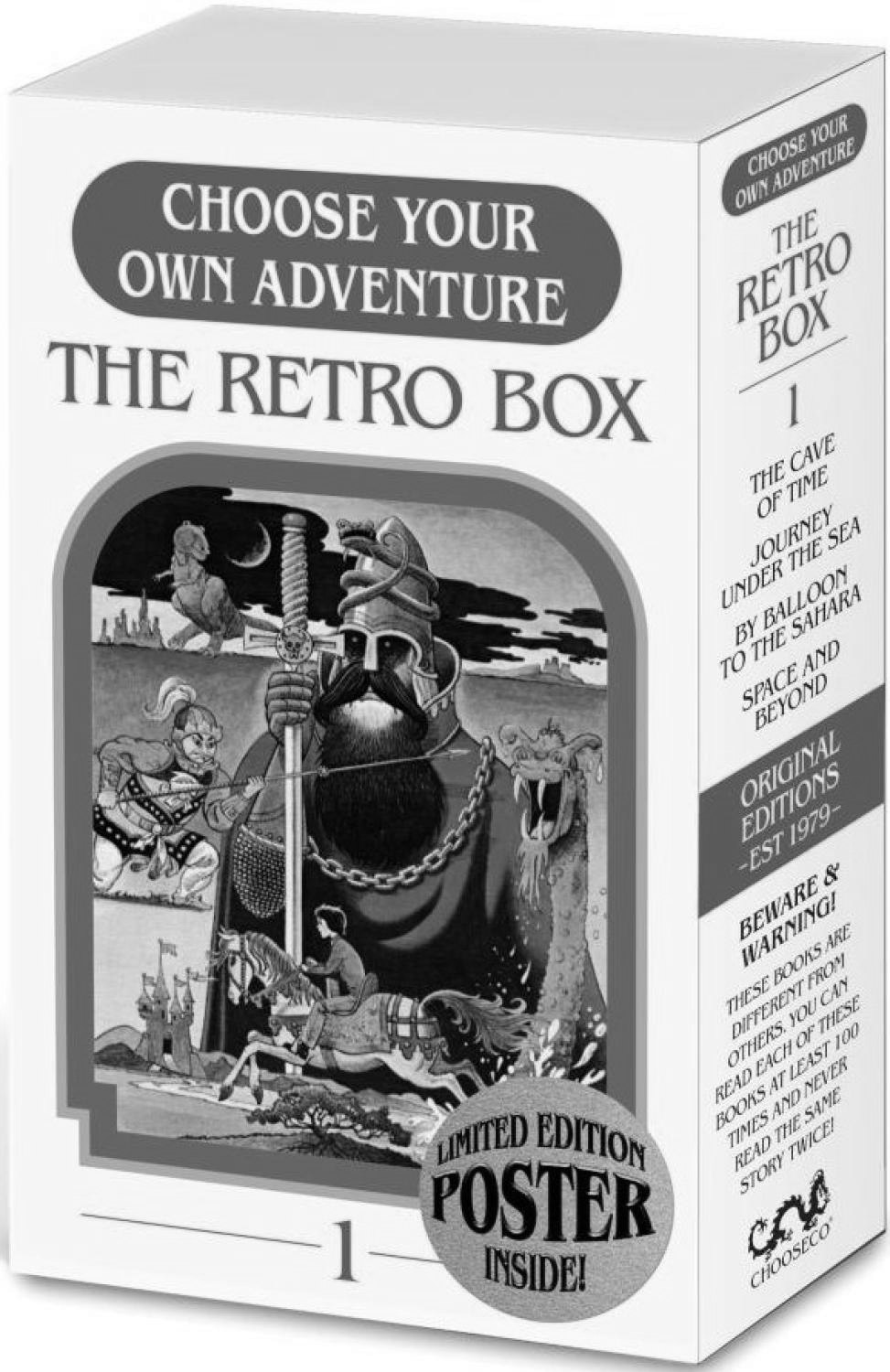 Explore winding paths through the past and future, search for the lost city of Atlantis in your very own submarine, blast off to the furthest reaches of the galaxy, and travel by hot air balloon across the forbidding dunes of the Sahara in this 4-book set boxed together in a nostalgic 80s-era gift box. Featuring exclusive editions of some of the most classic books in the Choose universe, The Retro Box includes: