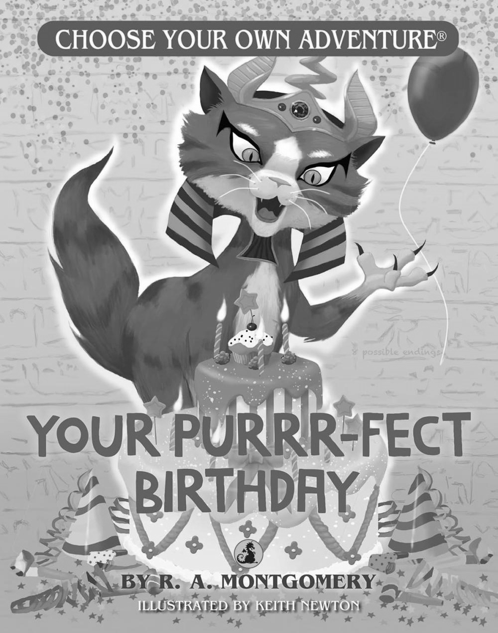 Your Purrr-fect Birthday by R. A. Montgomery takes YOU on a birthday adventure through time and space to ancient Egypt, the signing of the Declaration of Independence, the beginning of time, and beyond. Your 6-8 year old reader will learn about hieroglyphics and Egyptian culture, face down guards who look like giant cats, and witness several very special types of birthday!Choose Your Own Adventure Your Purrr-fect Birthday is an interactive adventure book in which YOU decide what happens next.Do you follow the directions your cat Festus has written in hieroglyphics? Or is it a trap? Do you try a sip of hairball tea?
