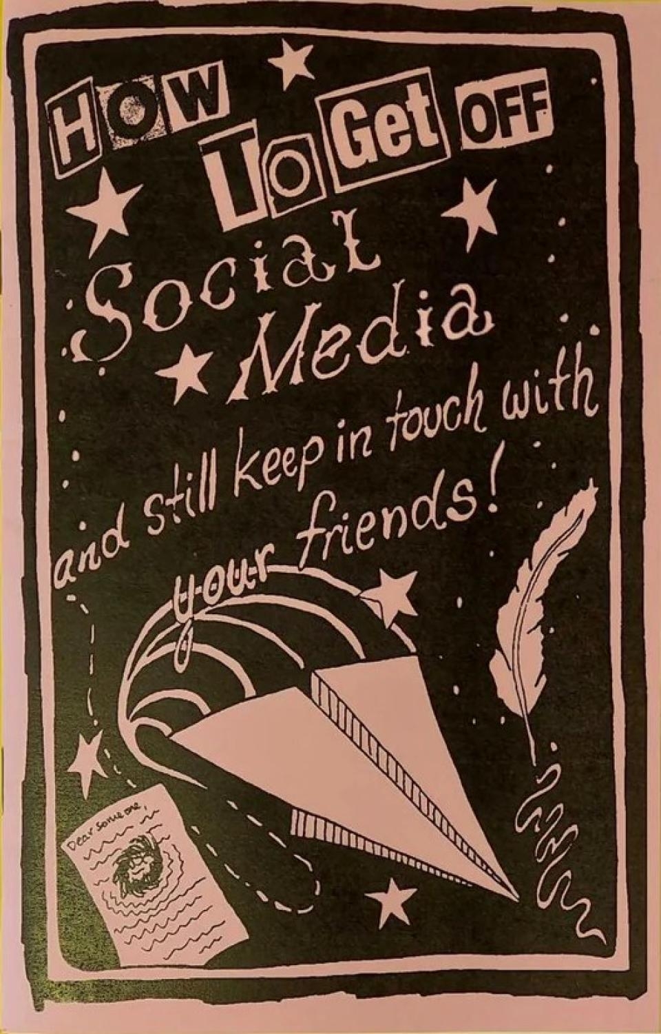 With a strategy for maintaining your relationships outside the confines of the internet, this little zine is part personal reflection on the merits of unplugging and part instruction manual for successfully extricating yourself from the ever-more-nightmarish world of social media. Author Sylvia Friday reflects on the uses of social media, and offers a critique of the ways that social media (especially for artists) has reduced art to a vacuous process of the capitalist cult of productivity. Friday calls for us to embrace snail mail and the beauty of ink and paper as a way to slow down, be creative in new and different ways, and engage more meaningfully with our friends through the process of writing physical letters on actual pieces of paper.