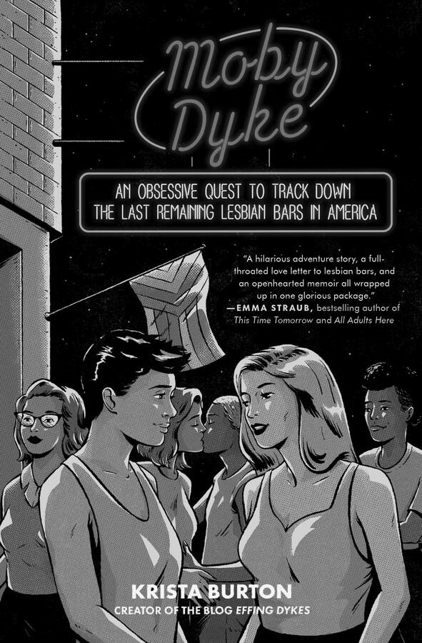 In Moby Dyke, Krista Burton attempts to answer these questions firsthand, venturing on an epic cross-country pilgrimage to the last few remaining dyke bars. Her pilgrimage includes taking in her first drag show since the onset of the pandemic at The Back Door in Bloomington, Indiana; competing in dildo races at Houston’s Pearl Bar; and, despite her deep-seated hatred of karaoke, joining a group serenade at Nashville’s Lipstick Lounge and enjoying the dreaded pastime for the first time in her life. While Burton sets out on the excursion to assess the current state of lesbian bars, she also winds up examining her own personal journey, from coming out to her Mormon parents to recently marrying her husband, a trans man whose presence on the trip underscores the important conversation about who precisely is welcome in certain queer spaces—and how they and their occupants continue to evolve.