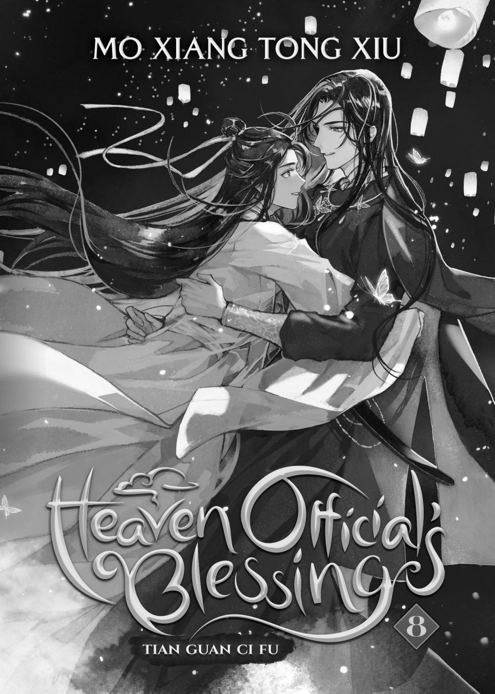 NEW YORK TIMES BEST SELLER! The blockbuster danmei/Boys’ Love novels from China that inspired the animated series!In this final book (Volume 8), read the conclusion to this epic historical fantasy about a prince and the mysterious man by his side, in English for the very first time. Also includes bonus stories!White No-Face’s mask is off, and the final conflict has begun. Deep in the ancient caverns and lava flows of Mount Tonglu, Xie Lian must face the one whose hatred has plagued him for centuries—but this time, he won’t have to do it alone. His beloved, Hua Cheng, has spent his long existence amassing the power to protect him, and now with their feelings for each other out in the open, they have all the more reason to fight for survival.In this thrilling conclusion to Heaven Official’s Blessing, can Xie Lian and Hua Cheng triumph against an all-powerful foe?Also included in this final volume are five bonus tales of romance, celebration, and adventure.