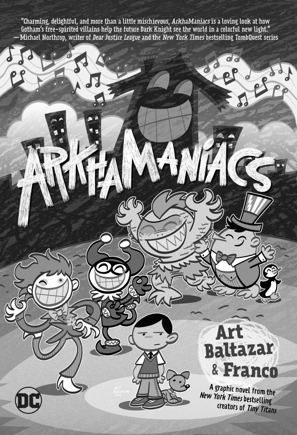 ArkhaManiacs is Art Baltazar and Franco providing their unique, cartoony take on a certain apartment building (Arkham) in Gotham City and the people (mostly!) who live there.There's an apartment building in Gotham City full of life: kids with special powers, pirates in the swimming pool, even a croc (or two!). Young Bruce Wayne is drawn to the fun and excitement he sees going on at the Arkham Apartments, but to Wayne Enterprises, it's just another property they own. Bruce is determined to find out why this apartment building is full of so much fun and laughter. What exactly is going on over there? Time to sneak over when no one is looking...even though it's like the house is laughing at him! HA HA HA!With ArkhaManiacs, Art Baltazar and Franco return to the DC Universe and provide their unique, cartoony take on a Gotham City quite unlike any we've seen before!