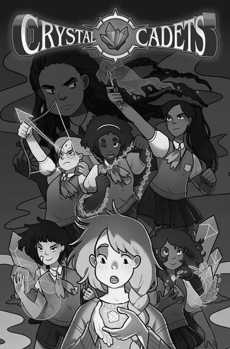 Zoe is a shy girl struggling to fit in at her new school when she finds a mysterious gem left to her by her birth mother. All of a sudden, darkness-spewing dragons are chasing her down in the schoolyard, and a squad of crystal-wielding girls is there to save her! Welcome to the Crystal Cadets, Zoe—you’re now the Diamond Cadet! Join Ruby Cadet Jasmine, Emerald Cadet Gwen, Garnet Cadet Olivia, Pearl Cadet Liz, and Sapphire Cadet Milena as a member of the toughest, smartest, and best-dressed team of evil-fighting girls in the world!