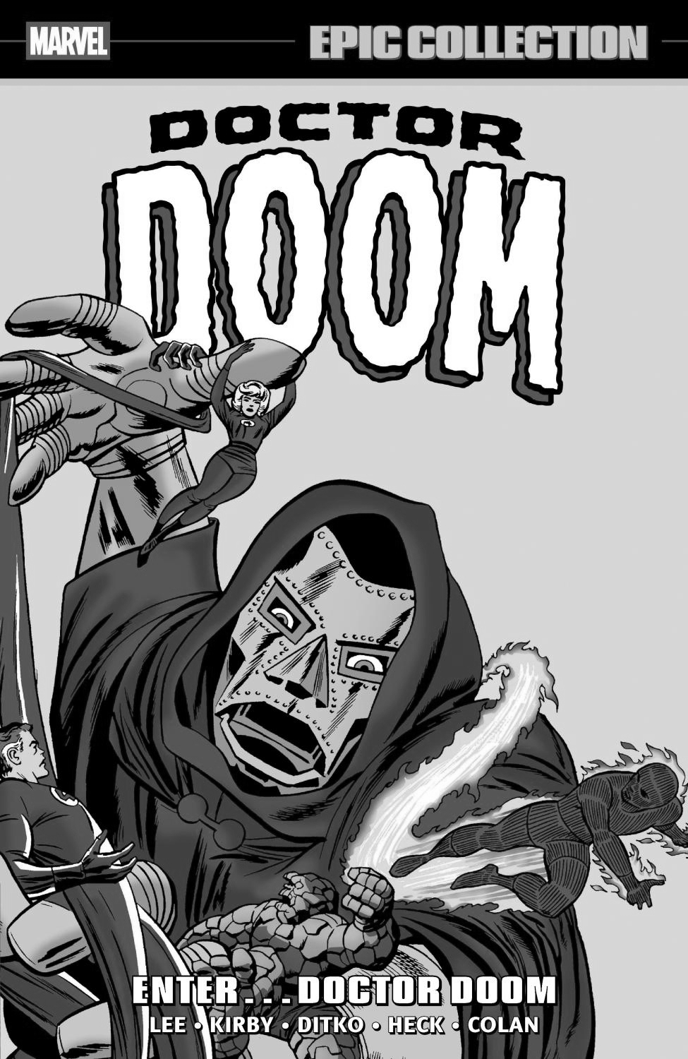 The greatest comic-book villain of all gets his own Epic Collection at last — beginning with the Latverian monarch’s first battle with his accursed enemies, the Fantastic Four! Discover the truth behind Victor Von Doom’s bitter rivalry with Reed Richards and watch as he unfolds plot after plot to destroy the FF! Doom forges a powerful alliance with Namor, the Sub-Mariner, steals the Power Cosmic from the Silver Surfer and sets his sights on world domination! But the Fantastic Four aren’t the only heroes standing in Doom’s way: He’ll also have early encounters with Spider-Man, Daredevil, Ant-Man and the Avengers! Plus: a villainous clash with the master of alchemy, Diablo — with the fate of Victor’s childhood friend, Valeria, at stake!