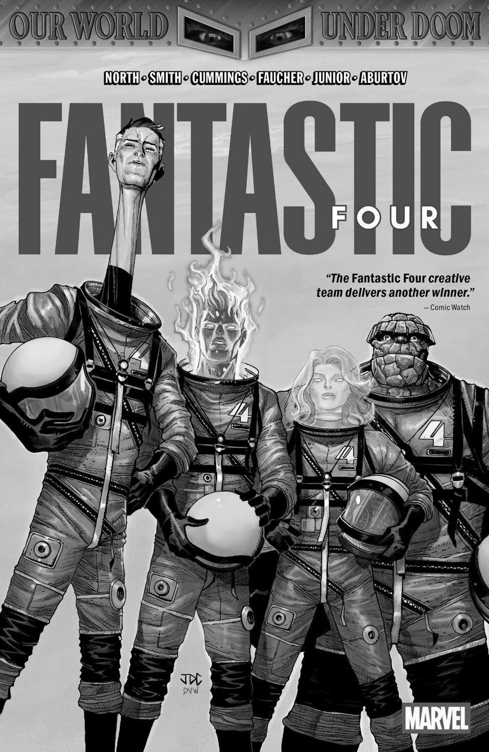 The impossible has happened! Doctor Doom has taken over the world! And the Fantastic Four are not going to let that stand. As Reed locks himself in his lab, trying to solve the Problem of Doom, Ben treats Sue to a trip to NYC with their mutual friend She-Hulk to help get her mind off things. But when Ben, Sue and Jen find themselves on the wrong side of mob justice, they face a choice — and it’s one they will not be able to take back! And when the Thing suffers a terrible (and very public) defeat at Doom’s hands, he’s left lost, adrift and more vulnerable than he has been in years. Just as Ben begins to recover, the FF learn they’re losing their powers — at the one time they need them the most desperately! If they can’t reverse the effect, their powers may be lost forever — and Doom will be unstoppable! All that plus Namor, the Sub-Mariner!