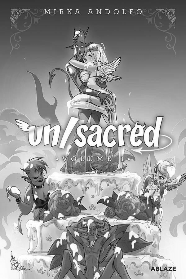 The extraordinary talent of Mirka Andolfo (Unnatural, Mercy, DC Bombshells) brings to life a Heaven (and a Hell) filled with humor and lovable characters! Angelina, a voluptuous angel, and Damiano, a mischievous devil, are madly in love. But, while she does not intend to give in to temptation, he would very much like to... This is the tale of their bizarre and spicy daily life! A sex-positive--and incredibly funny--slice of life...full of angels, devils and gags! Mirka Andolfo's Un/Sacred Vol 1 hardcover collects the hit series and includes a bonus section with cover gallery, sketches, and other behind-the-scenes material!