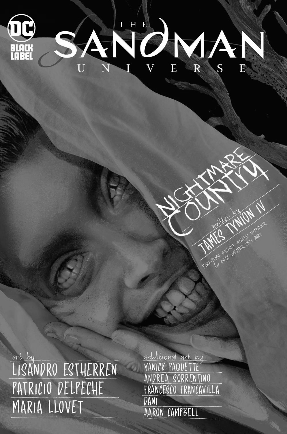 Acclaimed horror writer James Tynion IV (Something Is Killing the Children, The Nice House on the Lake) has waited his whole career to pay tribute to the mythos of The Sandman, the work that made him the writer he is today—and now that time has come! Art student Madison Flynn has been plagued all her life by visions of a terrifying man with mouths for eyes...but strangely, that vision is not a visit from the Corinthian, one of Dream's most disturbing nightmare creations. When the Corinthian himself learns of this Smiling Man, it will send him on a quest across the nightmare country that is the waking world, where he will grapple with vicious sadomasochists, deranged venture capitalists, and the embodied spirit of America itself! With lush, gorgeous art from Redneck's Lisandro Estherren and a who's-who of superstar guest artists, Nightmare Country is designed to welcome new readers into one of the greatest worlds in DC's library, The Sandman Universe. To make welcoming new readers easier, the collectible hardcover release (packaged with a mini-print of the iconic Death, by artist Jenny Frison) arrives in stores simultaneously with a direct-market exclusive softcover edition, priced as an easy jump-on point; both are available on the same day as the to-be-solicited April #1 issue of Nightmare Country's spectacular follow-up miniseries! Collects THE SANDMAN UNIVERSE: NIGHTMARE COUNTRY #1-6.