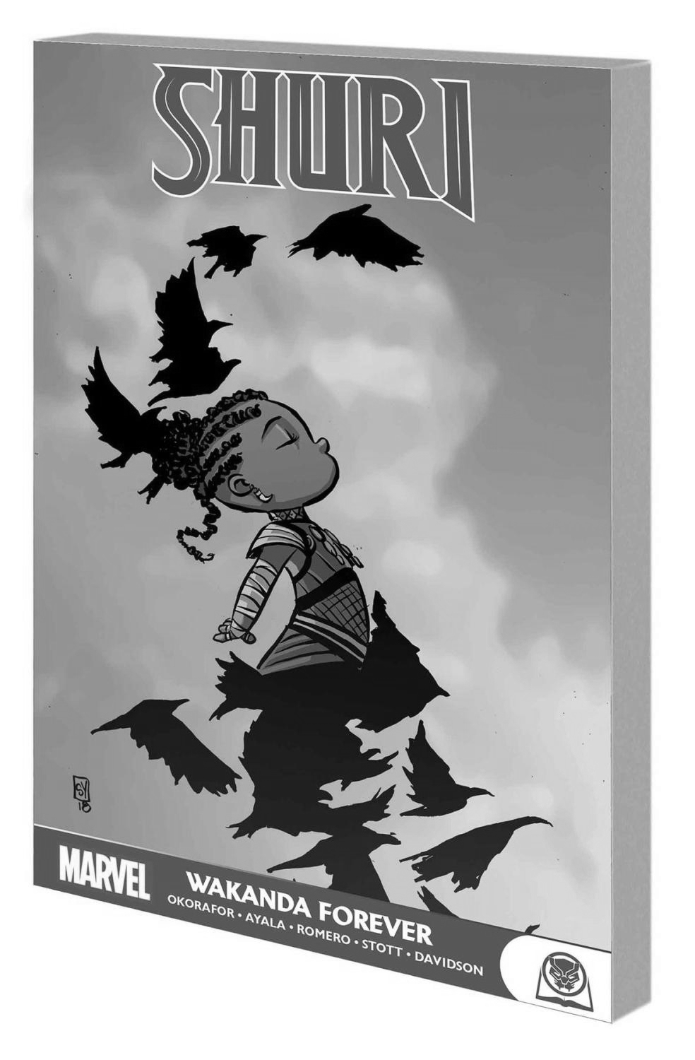 The Black Panther’s techno-genius sister stars in her own incredible adventures! T’Challa has disappeared, and Wakanda expects Shuri to lead their great nation in his absence! But she’s happiest in a lab surrounded by her inventions. She’d rather be testing gauntlets than throwing them down! So it’s time for Shuri to rescue her brother yet again – with a little help from Storm, Rocket Raccoon and Groot! But what happens when her outer-space adventure puts Africa at risk from an energy-sapping alien threat? Then, Shuri heads to America to investigate a lead, with Ms. Marvel and Miles “Spider-Man” Morales along for the ride! But with her people in peril, will Shuri embrace her reluctant destiny and become the Black Panther once more? Prepare for a hero like you’ve never seen before!