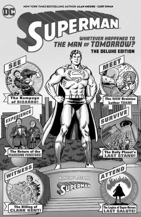 Legendary writer Alan Moore’s seminal Superman tales are collected in this Deluxe Edition hardcover in which the Man of Steel faces his greatest foes and his final battle with the combined forces of Brainiac and Lex Luthor! Also featuring the classic story “For the Man who has Everything” from Superman Annual #11 in which Batman, Robin and Wonder Woman fight the evil warlord Mongul for the fate of The Man of Steel, as illustrated by Moore’s Watchmen collaborator, artist Dave Gibbons. And in a tale from DC Comics Presents #85, Superman meets Swamp Thing, a character fans have identified with Moore for over 20 years!