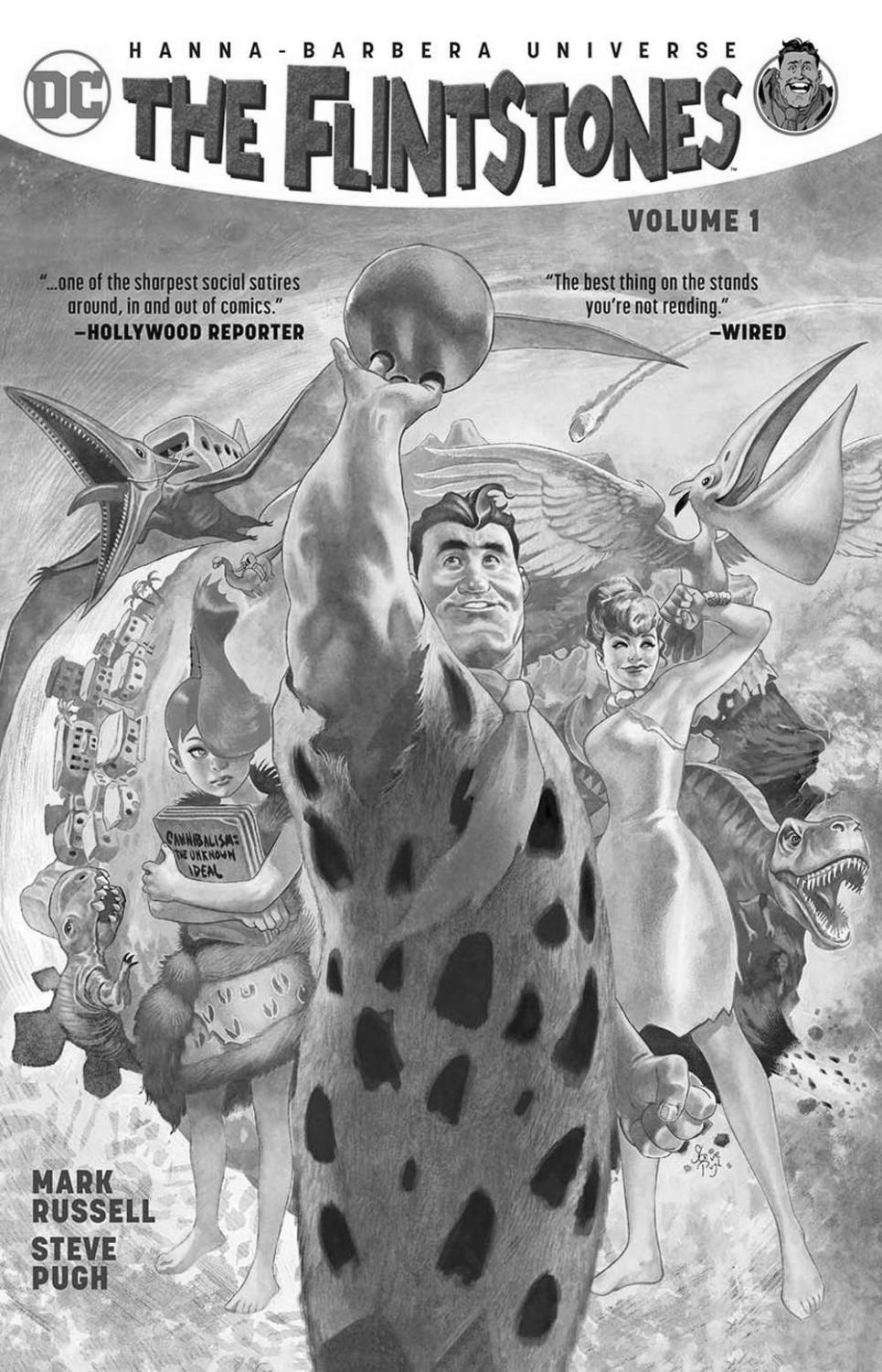 The critically acclaimed creative team of Mark Russell (PREZ) and Steve Pugh (ANIMAL MAN, SWAMP THING) set out to turn a beloved classic cartoon into a modern graphic novel masterpiece with THE FLINTSTONES VOL. 1, which collects THE FLINTSTONES #1-6.