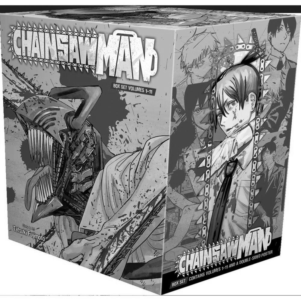The rip-roaring first arc of Chainsaw Man, all in one jaw-dropping box set! This box set contains the first 11 volumes of the global hit Chainsaw Man as well as an exclusive double-sided full-color poster.