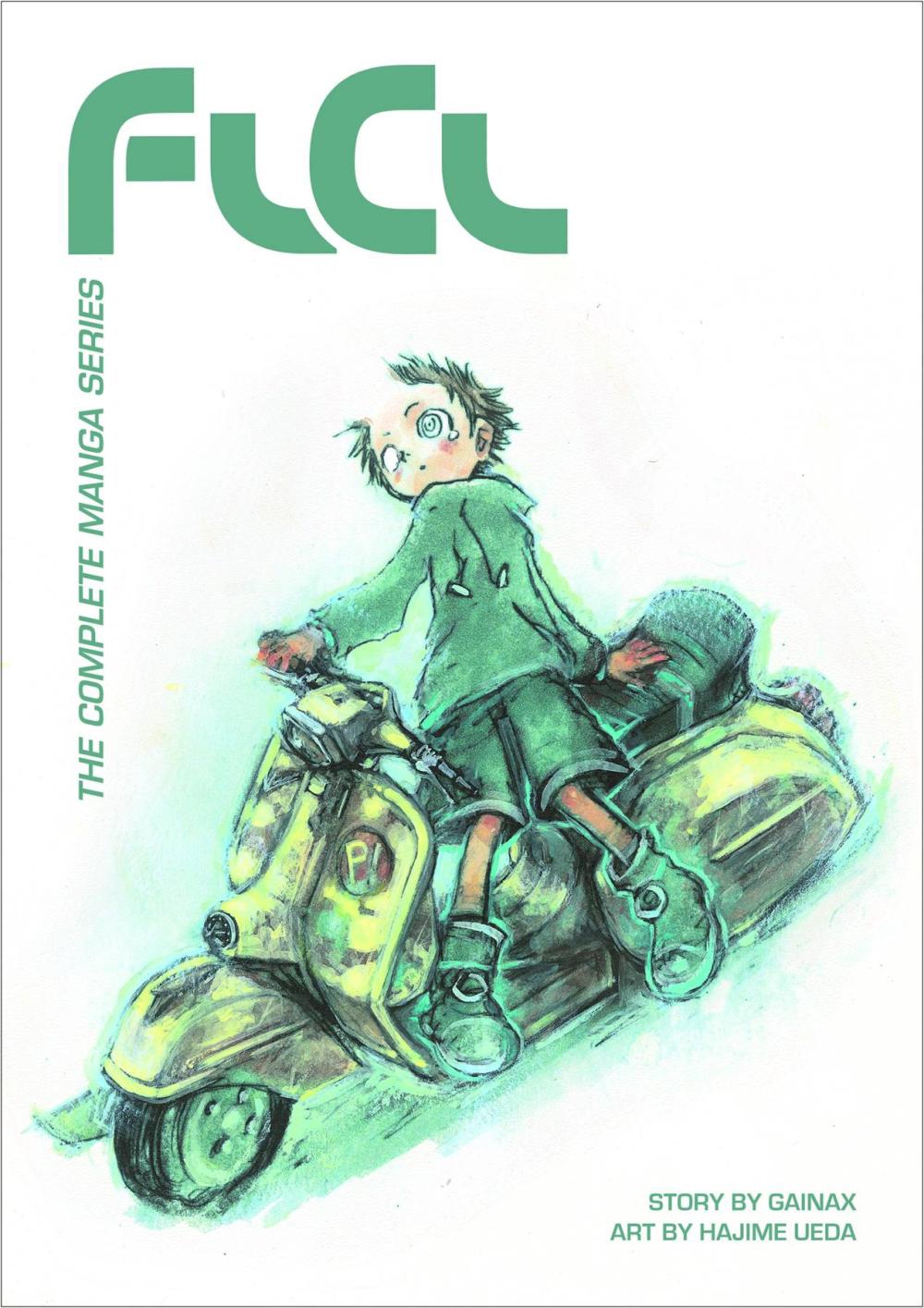 The complete FLCL manga adaptation—now with bonus color illustrations and remastered story pages! In this surreal sci-fi romp, a sullen Japanese boy finds himself in the middle of an interstellar conspiracy. As his home life unravels, a sexy space assassin becomes his family maid, and his own head becomes a portal for armed robots. Life as he knows it is quickly falling apart, and Naota doesn’t know who’s friend or foe! One thing’s for certain—he has to grow up quick and save his hometown, whether he wants to or not!