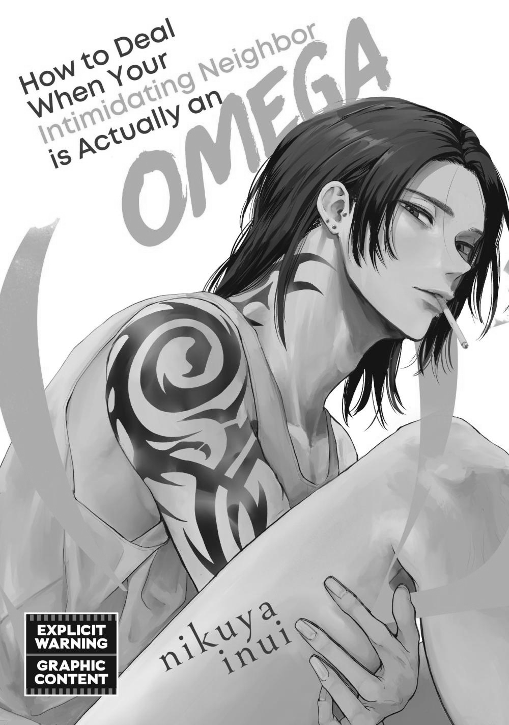 Nikuya Inui's suspenseful and erotic new Omegaverse rom-com manga is finally here! A college-aged Alpha lives next door to a scary-looking hottie whom he assumes is an Alpha, too, but a shocking encounter will correct that assumption! An irresistible, tattooed Omega, living next door... What's a virgin Alpha to do?Complete story in one volume!"He looks like a cold and handsome Alpha…who'd ever think he was actually a twisted and sexy Omega!"Kota is a college student, and an Alpha. Still, he dreads bumping into his neighbor, a super-intimidating hunk with big, black tattoos. He always assumed this mystery man was an Alpha, too, and avoided him like the plague...until, one day, a scent wafts in so powerful it puts even the dull-headed Kota in a daze. It's the scent of Omega pheromones, from next door! He assumes his neighbor's brought an Omega home, but when he tries to leave, what should he find but the source of the pheromones: his hot neighbor! How will he get out of this situation unscathed, and without his neighbor finding out he's a virgin?!