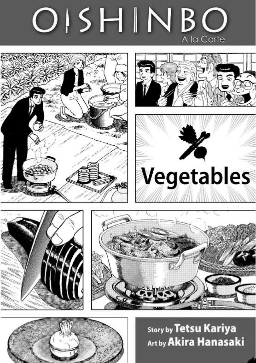 Weekly Time magazine sets up a series of culinary battles between the Tōzai News's "Ultimate Menu," represented by Yamaoka, and the Teito Times's "Supreme Menu," represented by Kaibara Yūzan, Yamaoka's father and nemesis. The ingredient this time is vegetables, specifically cabbages and turnips. Who will win the Vegetable Showdown? Later, Yamaoka and Kurita help Tomii's son get over his hatred of eggplant, and patch a rift between lovers using the power of asparagus.