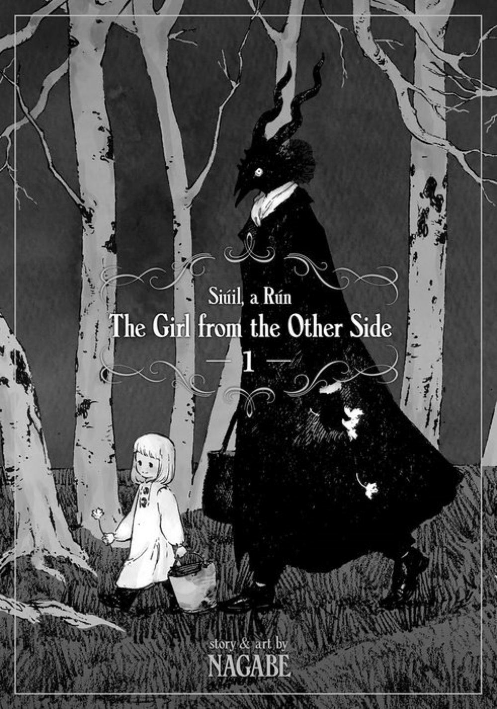 The Girl From the Other Side: Siúil, a Rún is an all-new manga series that pulls readers into a magical and enchanting tale about a young girl and her demonic guardian. A haunting story of love and fantastical creatures, The Girl From the Other Side: Siúil, a Rún is a gorgeously-illustrated manga series. Each volume in the series will be released with a beautifully-textured matte finish cover and will include at least one full-color insert.In a world split between the Inside and the Outside, those living in both realms are told never to cross over to the other side, lest they be cursed. A young girl named Shiva lives on the other side, in a vacant village with a demonic guardian known only as “Teacher.” Although the two are forbidden to touch, they seem to share a bond that transcends their disparate appearances. But when Shiva leaves Teacher’s care to seek out her grandmother, the secret behind her mysterious living arrangement comes to light.