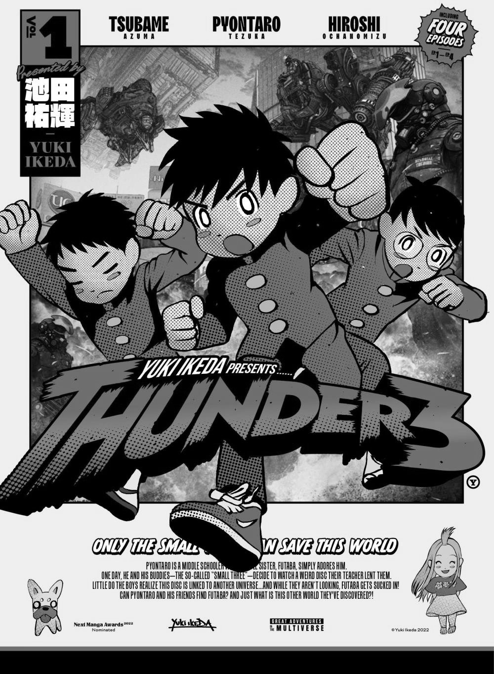 Pyontaro is a middle schooler whose little sister, Futaba, simply adores him. One day, he and his buddies—the so-called “Small Three”—decide to watch a weird disc their teacher lent them. Little do the boys realize this disc is linked to another universe…and while they aren’t looking, Futaba gets sucked in! Can Pyontaro and his friends find Futaba? And just what is this other world they’ve discovered?!